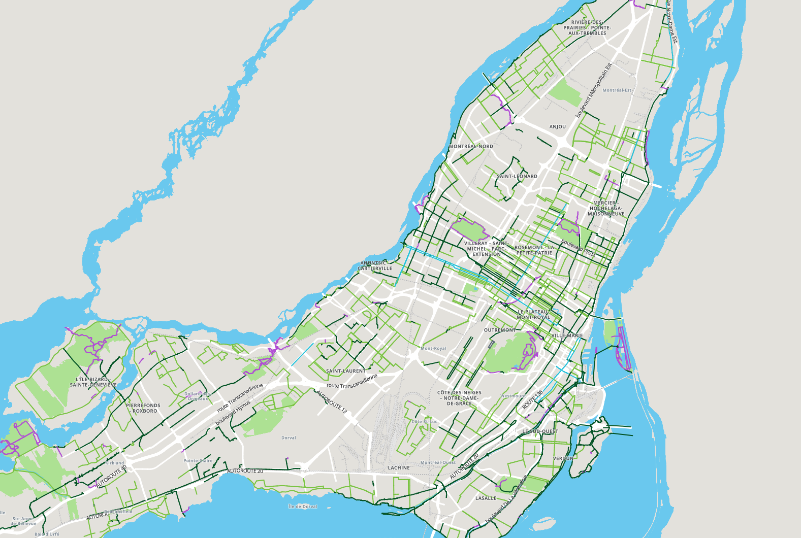 Montréal comprend un vaste réseau de pistes et de voies cyclables, dont une grande partie reste accessible toute l'année.